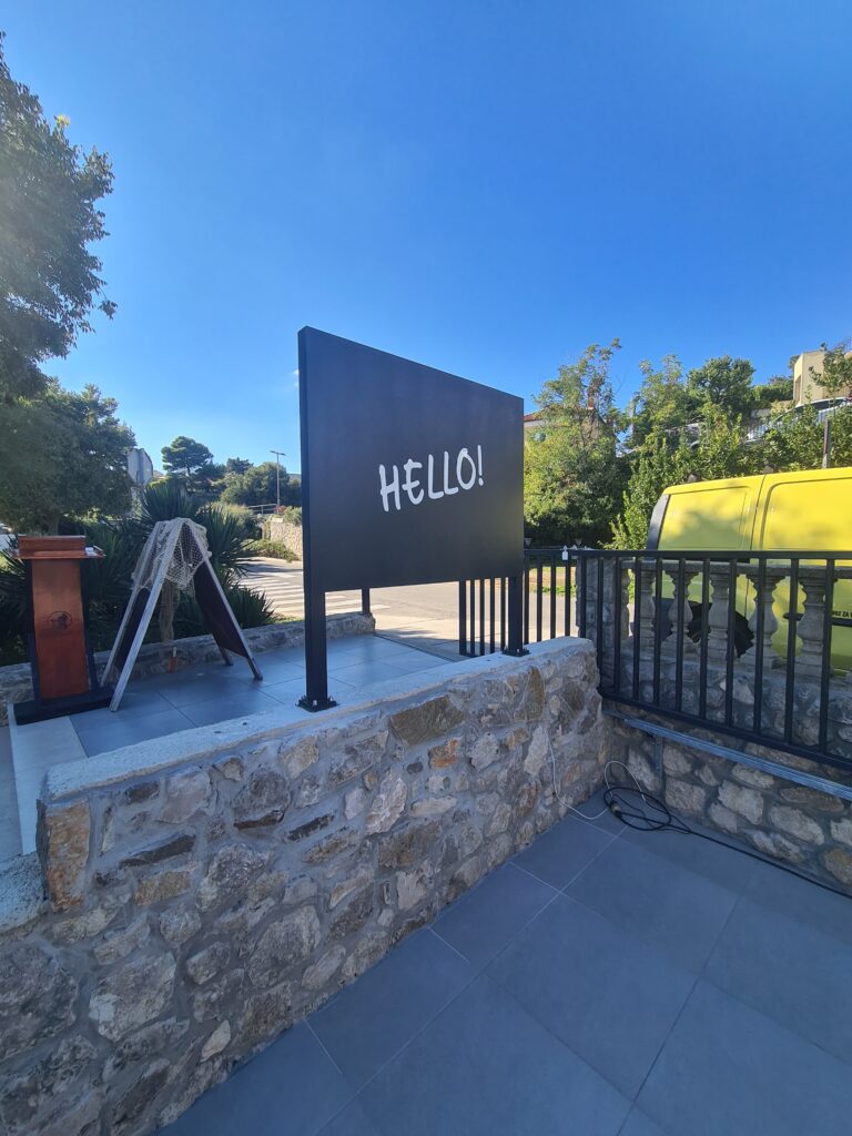Izrađujemo razne vrste prometne i turističke signalizacije, također nudimo izradu reklamnih panoa, svjetlećih reklama, označavanje turističkih i biciklističkih staza i ostalo. U galeriji možete vidjeti neke od naših dosadašnjih radova.